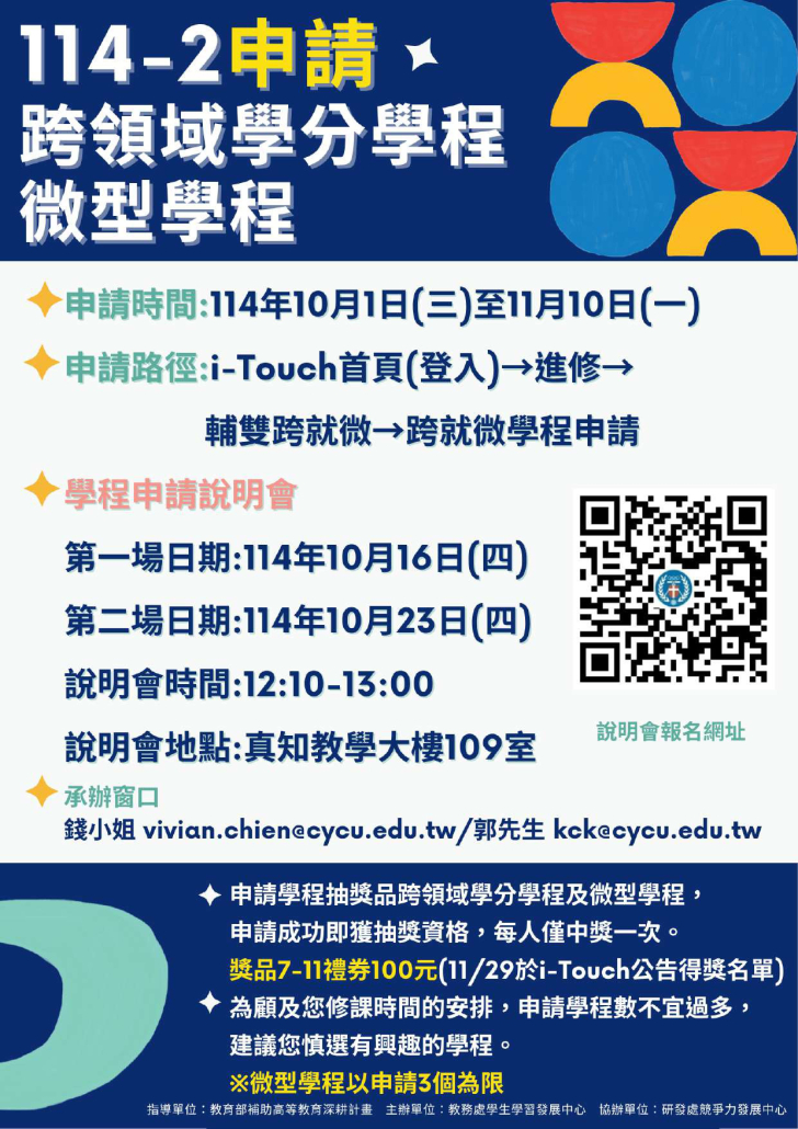 【中原大學114-2學期-跨領域學分學程及微型學程-申請公告】