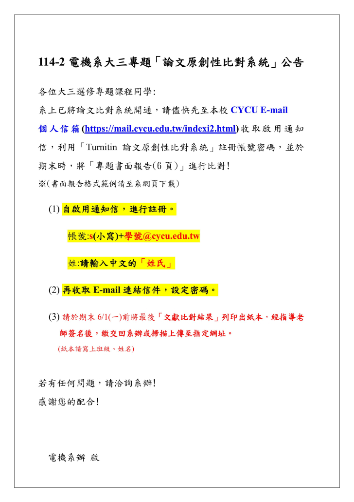 【114-2電機系大三專題「論文原創性比對系統」公告】